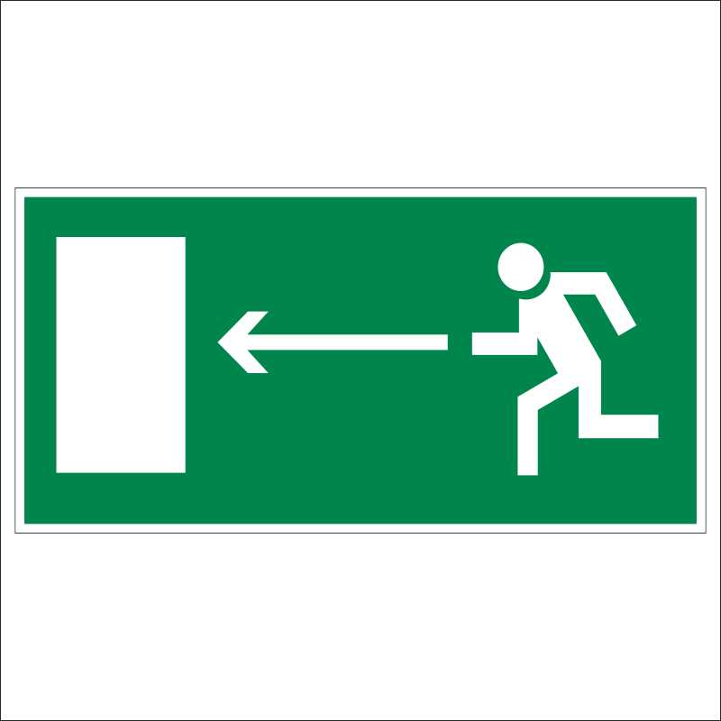 Эвакуационный знак «Направление к эвакуационному выходу налево» размещается на стенах вдоль путей эвакуации из здания. Он указывает направление, в котором нужно двигаться, чтобы найти эвакуационный выход. Применяется в дополнение к световым указателям. Представляет собой прямоугольник с белой пиктограммой, изображенной на зеленом фоне. В сочетании с другими эвакуационными знаками помогает в организации маршрута эвакуации для спасения жизни и здоровья сотрудников предприятия при возникновении чрезвычайной ситуации.