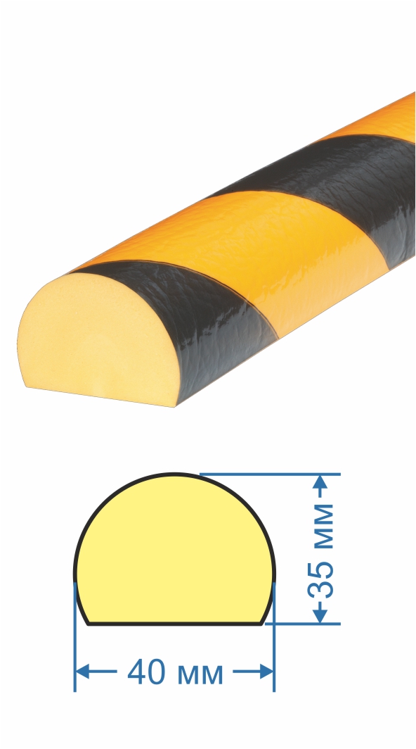 Предостерегающий защитный профиль поверхности ГАСЛАЙН (GASLINE) тип B; черно-желтый (D40х1000; 19х8мм; гибкий пенополиуретан)