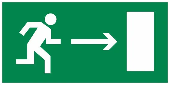 Знак E03 Направление к эвакуационному выходу направо, 300х150 мм, основание пластик, толщина 3 мм, самоклеящаяся фотолюминесцентная виниловая пленка, цвет белый/зеленый ГОСТ 12.4.026-2015