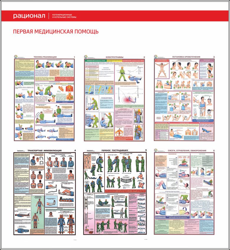 Стенд Первая медицинская помощь 6 плакатов А3 (1100х1200; Пластик ПВХ 4 мм; Пластиковый белый)