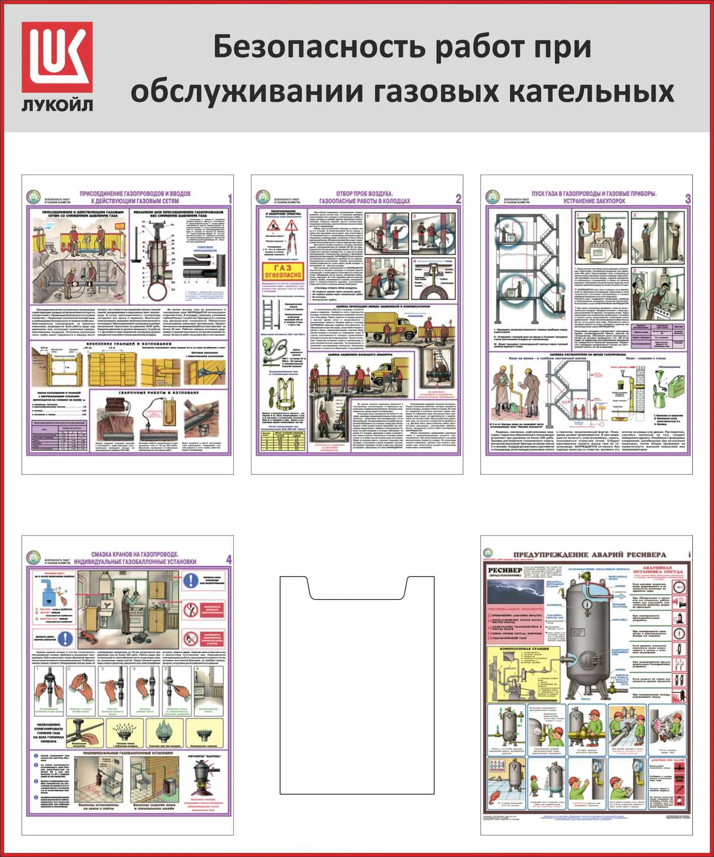 Стенд Безопасность работ при обслуживании газовых котельных, 5 плакатов А3, 1 карман А4, Логотип (1000х1200; Пластик ПВХ 4 мм, алюминиевый профиль; Алюминиевый профиль)