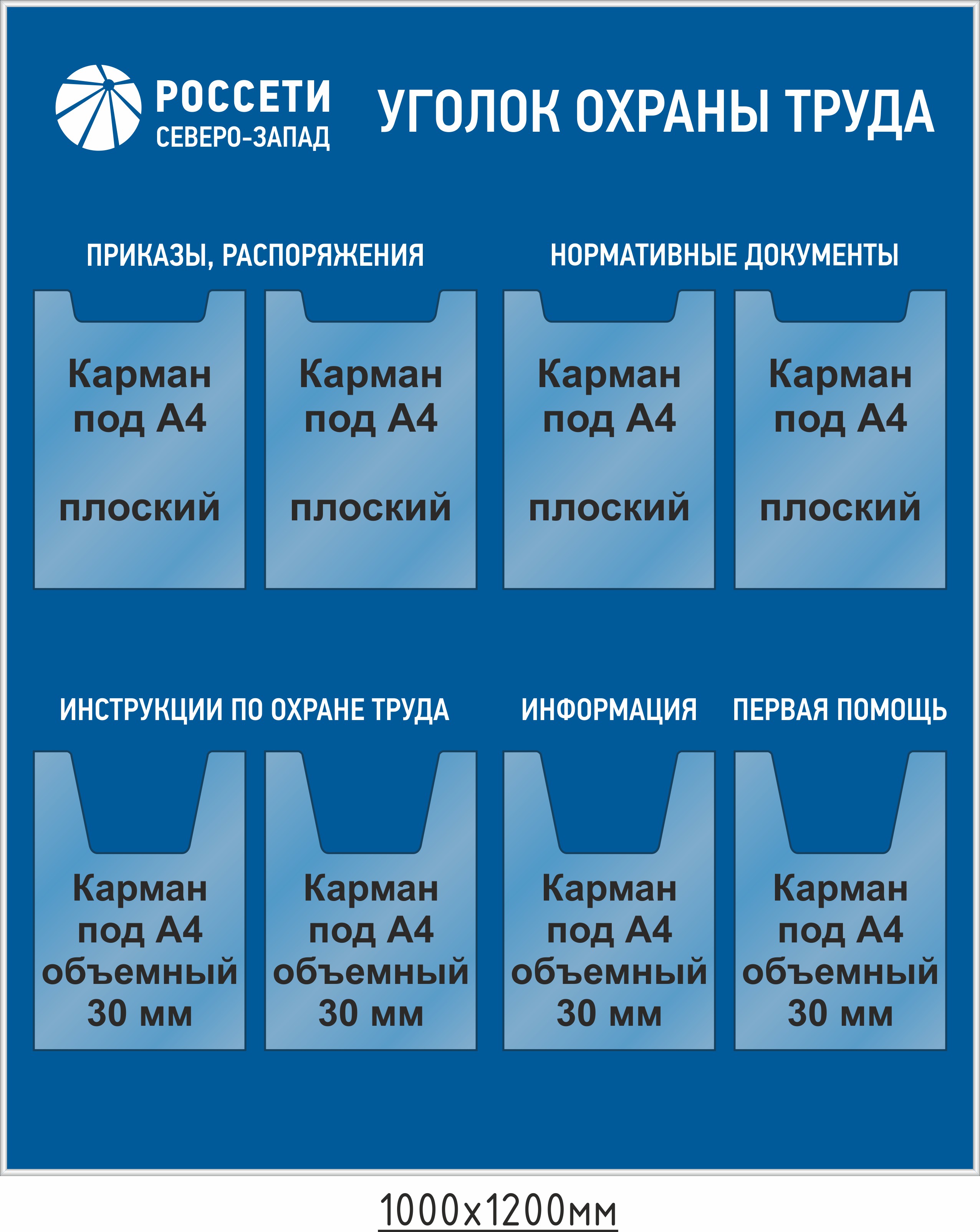 Стенд Рейтинг по охране труда , 1000х1200, ПВХ, 3 кармана А4 толщиной 5 мм, 1 карман 100х150 толщиной 5 мм, 6 карманов 100х30 плоские (вставка справа) на скотче; таблица учета показателей по ОТ должна быт пригодной для внесения подписей маркером. (ОЛ-РЕЙТ