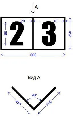 Технические характеристики: Размер – 500 х 250 мм. Толщина – не менее 3 мм. Материал – негорючий атмосфероустойчивый композит (полиуретан, полиэтилен). Климатическое исполнение – ХЛ1 по ГОСТ 15150-69.Цвета: Внешняя рамка – черный (RAL 9004). Вертикальная полоса – черный (RAL 9004). Фон – белый (RAL 9003). Надписи – черный (RAL 9004).