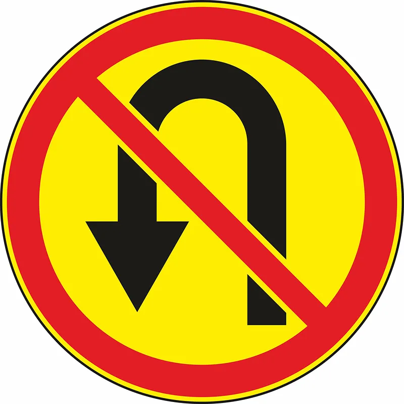 «Разворот запрещен» запрещает разворачиваться любому виду транспорта. Запрет действует только на возможность выполнения указанного маневра: поворачивать налево разрешено. Знак размещают непосредственно перед тем перекрестком, в зоне которого данный маневр может стать опасным для остальных транспортных средств и пешеходов. Не запрещены развороты в местах, где есть разрыв разделительных полос на дорожной поверхности между перекрестками. Маршрутные такси не подпадают под зону действия этой таблички.