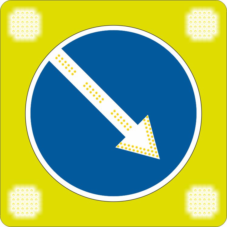 Знак 4.2.1 (4.2.2) Светодиодный дорожный знак на желтом щите с 4 проблесковыми маячками