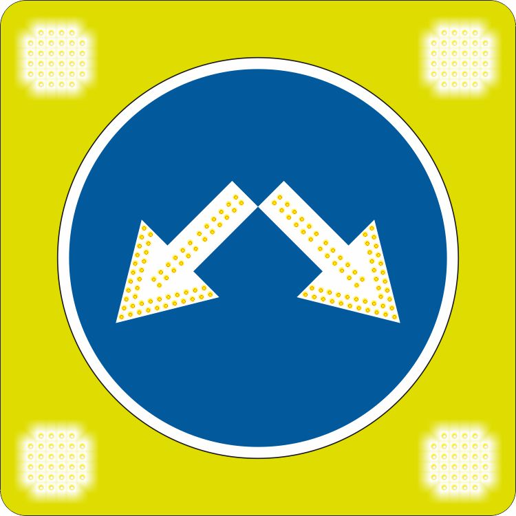Знак 4.2.3 Светодиодный дорожный знак на желтом щите с 4 проблесковыми маячками